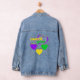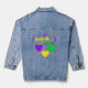 Farbenfrohe Herzen in Lila Gelb und Grün, Mardi Gras Typografie, lustige Niedliche Karnevalsfett Dienstag Logo Denim Jacket