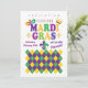 Mardi Gras Karneval Feiertag Einladung. Mardi Gras Karneval Design mit festem Harlequin geometrischer Diamant, Rhombus Arrangement Muster, Lilie, Dekorative Elemente, Grün, Gelb, Lila Farbe, Masquerade Festival Dekoration. Funny Carnival Masquerade New Orlean Modern Art for Invitations & Stationery > Einladungen & Ankündigungen. Diese Festiveinladung mit Textvorlage, ist einfach mit Ihrem Text angepasst.