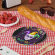 Eine Mardi Gras Karneval Maske und farbenfroher Hintergrund. Dieses Design sieht wirklich effektiv aus bei diesen Paper-Tellern