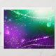 Heller lila und grüner Hintergrund mit glänzenden Konfetti. Festival Mardi Gras.