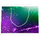 Heller lila und grüner Hintergrund mit glänzenden Konfetti. Festival Mardi Gras.