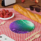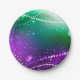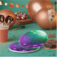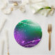 Heller lila und grüner Hintergrund mit glänzenden Konfetti. Festival Mardi Gras.