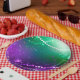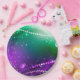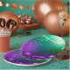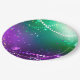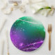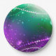 Heller lila und grüner Hintergrund mit glänzenden Konfetti. Festival Mardi Gras.