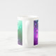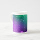 Heller lila und grüner Hintergrund mit glänzenden Konfetti. Festival Mardi Gras.