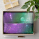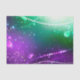 Heller lila und grüner Hintergrund mit glänzenden Konfetti. Festival Mardi Gras.