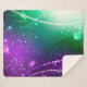 Heller lila und grüner Hintergrund mit glänzenden Konfetti. Festival Mardi Gras.