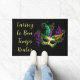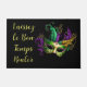 Perfekte Mardi Gras Hausdekoration. Das festliche New Orleans Mardi Gras Gastgeschenk in grünem Gold und lila, die traditionellen Farben des Fat Dienstag Karneval. Anpassen des Texts