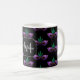 Personalisieren Sie funkelnd Wohngestaltung Trinkbehälter Kaffee Tasse mit Ihrem Initial und Namen. Mardi Gras Maske Lila grüne Gold Glitzern Muster auf schwarz. Foto von Glitzern nicht wirklich Glitzer!