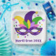 Niedliches und festliches Design für Ihr Mardi Gras themed Party. Personalisieren Sie die Wörter und das Jahr.