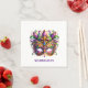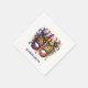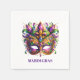 This paper napkin is shown in white with a fancy Mardi Gras mask art print.