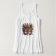 This women's tank top is shown in white with a fancy Mardi Gras mask art print.