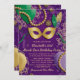 Feiern Sie jedes Alter Mardi Gras Maske Geburtstagsfeier Einladungen mit einer Goldmaske mit Imitat Glitzer grün aussehen, Gold und lila Federn und grüne Krawatte, Ballons, Perlen, Bucht und verzierte Muster im Hintergrund. Egal ob Sie in den französischen Quartieren von New Orleans feiern oder im Fat Dienstag Geist sind, Sie werden Laissez Bon Temps Rouler mit diesen lustigen Masquerade Themen lädt in der Tradition Mardi Gras Farben. Kunstwerk © Chrissy H. Studios, LLC. Alle Rechte vorbehalten.