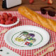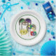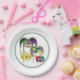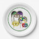 Set von acht 9" Papier Tellern mit einem Bild von vier farbigen Mardi Gras Masken mit hellen Federn, Sequinen und Glitzer auf weiß mit einer grünen Grenze. Siehe dazu passende Süßigkeiten, Espressotasse, Kolben, Tasse, Krug, Schuss Glas, Teekanne und Untersetzer. Sehen Sie sich die gesamte Mardi Gras Plate Kollektion im NAHRUNGSMITTEL/BEV an. | Abschnitt Geschirr.