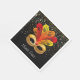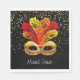 Diese Papierserviette im Standardformat wird mit einer festlichen Mardi Gras Karnevalmaske auf schwarzer Hintergrundfarbe gezeigt. Schwarz auf weißer Papierserviette. Standardgröße für das Mittagessen. Passen Sie dieses Objekt an oder kaufen Sie, wie es ist.