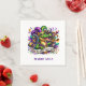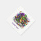 This paper napkin is shown in a festive Mardi Gras celebration print.
