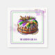 This paper napkin is shown in a festive Mardi Gras king cake celebration print.