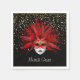 Diese Standard-Cocktailserviette wird mit einer festlichen Mardi Gras Karnevalmaske auf schwarzer Hintergrundfarbe gezeigt. Schwarz auf weißer Papierserviette. Passen Sie dieses Objekt an oder kaufen Sie, wie es ist.