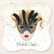 Das Papier Untersetzer Set wird mit einem festlichen Mardi Gras Maskendesign mit goldenen Sternen gezeigt. Passen Sie dieses Objekt an und ändern Sie den Stil oder kaufen Sie, wie es ist.
