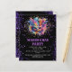 Maßgeschneiderte Mardi Gras Party Einladung. Mit einer bunten Maskerade Mardi Gras Maskerade Maske und Imitate Glitzer auf einem schwarzen Hintergrund drucken.