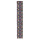 This table runner is shown with a Mardi Gras mask pattern print.