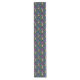 This table runner is shown with a Mardi Gras mask pattern print.