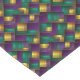 This table runner is shown with a Mardi Gras pattern print.