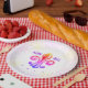 Diese Teller sind die ideale Wahl für Ihr Mardi Gras Party. Dieses Design zeigt eine Lilie in der Mitte in einem Regenbogen von Farben, rosa, lila, orange, gelb und rot. Der Teller lautet "Mardi Gras" mit dem Jahr für Sie zu personalisieren. Entworfen von dem weltbekannten Künstler ©Tim Coffey.
