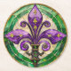 Mardi Gras Stained Glass Fleur de lis Runder Pappuntersetzer