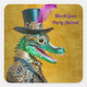 Mardi Gras Steampunk Party Animal Alligator Quadratischer Aufkleber