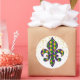 Dieser große Rundaufkleber wird in einem Mardi Gras-Fest Fleur De Li Print Design gezeigt. Passen Sie dieses Objekt an oder kaufen Sie, wie es ist.
