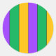 Mardi Gras Streifen Muster Lila-Gelb Runder Aufkleber