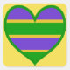 Mardi Gras Striped Heart Quadratischer Aufkleber