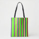 Diese Tasche hat ein einfaches Mardi Gras Design von vertikalen Streifen in gelb, grün und lila.