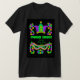 Ein T - Shirt für Mardi Gras mit Krone, Maske und Perlen in den traditionellen Farben - grün, lila und goldgelb, aus einer handbemalten Papiercollage von Judy Adamson.