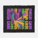 Stilvolle MARDI GRAS Top Hat Feathers Fleece Blanket in den beliebten Farben lila, gold und grün. Das Design zeigt einen großen Mardi Gras Top Hut mit Federn und Theatermasken. Die Phrase MARDI GRAS wird in den gleichen Farben im Hintergrund in fett gedruckter Typografie wiederholt. Ideal Mardi Gras Fleece Blanket, um warm in den Straßen von Louisiana, New Orleans, Brasilien, und überall Mardi Gras gefeiert wird.