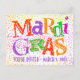 Schicken Sie Ihren Gästen diese festliche Mardi Gras Party Einladung Postkarte, um sie zu wecken. Dieses lustige Typografie-Design von bunten Schriften liest "Mardi Gras" zusammen mit dem Datum Ihres Party auf der Vorderseite und wird Ihre Gäste in der feierlichen Stimmung. Auf der Rückseite der Postkarte befinden sich Ihre Party-Details mit einer Konfetti-Sprinklerei. Designed by artist ©Tim Coffey.