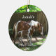 Die erste Weihnachtsmare und Foal Weihnachtsschmuck mit rustikalem Western Pferd Foto. Mama Pferd führt ihr Kleines während eines ersten Ausflugs. Passen Sie den Namen Ihres Kindes an.
