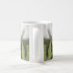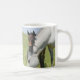Foto einer grauen Stute, die neben ihr eine Buschkälte stehend, in ihren Hals eingebettet. Auf beiden Seiten der Tasse gedrucktes Bild.