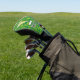 Ein Glas Margarita Cocktail auf einem nahtlosen grünen Hintergrund. Benutzerdefinierter Text.