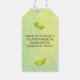 Feiern Sie Ihr Junggeselinnen-Abschied- oder Bachelorettenwochenende mit Margaritas. Dieses lustige Geschenktag zeigt ein Aquarellbild einer klassischen Margarita mit Limonen Keilen, die verstreut sind. Der Rahmen enthält Informationen über einen grünen Fleckenmuster-Hintergrund. Ein Paar Hochzeitsringe bringt den Sinn der Feier Zuhause. Die Rückseite hat den grünen Hintergrund und einen Bereich, um Ihre eigene personalisierte Nachricht hinzuzufügen. Macht ein perfektes Geschenketikett, um einen Junggeselinnen-Abschied oder eine Hühnernacht zu machen, an den man sich erinnern kann. Verfügbar mit passenden Produkten.
