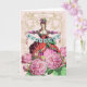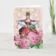 A delightful card featuring Marie Antoinette holding a birthday banner. Beautiful flowers fill the foreground. Taken from an 18th century fashion plate.