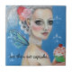Mein originelles Acrylkunstgemälde von Marie Antoinette als Cupcake Queen... Sie ist got Rose und Federn in ihrem Pompadorhaar, sie trägt Perlen, sie got Flügel und sie weiß, wie man sie benutzt. Sie steht vor einer schönen blauen Wandfarbe mit französischem Fleur de lys. Sie hat einen Kirschkuchen got... Was könnte noch ein Mädchen gewollt haben?