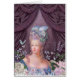 Königin von Frankreich, Marie Antoinette, mit Lavendel, Hydrangea, Rosen, Wildblumen und Schmetterlingen auf Vintagem lila Damastmuster. Fertigen Sie dieses königliche Vintage Blumenporträt mit Ihrem eigenen Text besonders an. Verfügbar in den Einladungen, in den Geschenktaschen, in den Umbauten und in mehr.