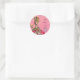 Eine üppige Marie mit Federn und einem Pfau im Haar. Sie trägt einen Teller mit winzigen Kuchen. Im Hintergrund ist Kaugummi pink mit Wirbel. Spaß für Geburtstagsfeiern, Tee-Party, etc. Wenn Sie Hilfe bei der Personalisierung benötigen, kontaktieren Sie Greer unter greerdesign@aol.com