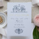 Der barocke Rokoko aus dem 17. Jahrhundert inspirierte die Teller von Hochzeitspapier in Dusty Blue. Stellen Sie sich vor, Sie könnten die große Hochzeit von Louis XVI & Marie Antoinette? Mit ein wenig Fantasie können Sie!