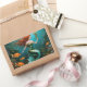 "Marielle" - Schöne tanzende Meerjungfrau. Aquatic Ballet: In diesem faszinierenden Bild tanzt eine atemberaubende Meerjungfrau mit fließendem rotem Haar anmutig auf dem Meeresboden, ihr grüner und blauer Fischschwanz funkelt im Wasser. Umgeben von einem Unterwassergarten mit Fischen und Korallen, scheint sie sich in den Rhythmus der sanften Wasserstimmen zu bewegen. Die Szene, gefüllt mit subtilen, mehrfarbigen Farben, fängt die ruhige, fließende Schönheit dieser stilisierten Pre-Raphaelite Kunst ein. Haben Sie schon einmal einen Meerjungstanz so elegant in der Tiefsee gesehen?