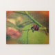 Roter Harlekin Marienkäfer auf Pflanze im Garten mit zarter Textur
