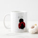 Marienkäfer-Tasse groß für Recht und links handers. Geschmückt mit zwei Bildern fertigen Sie Ihren Text besonders an.