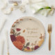 Stilvolle rustikale Hochzeitszettel-Teller mit martigen Blume, Chrysanthemum, Dahlia Blumenherbst mit Vintager Grenze. Warme Orange, Bordeaux, goldene Farbtöne und Herbstlaube harmonieren mit Beige und sorgen für ein botanisches Ambiente. Elegantes böhmisches Design perfekt für Frühlings-, Sommer- oder Herbst-Empfänge mit Terrakotta und verbrannten Orangenakzenten.