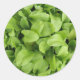 Dieses Blatt rundes Aufkleber zeigt ein Foto einer Masse grüner Marigold-Sämlinge, die in meinem Hintergarten angebaut wurden. Das Foto wurde mit Makrofotografie für ein detailliertes Ergebnis erstellt.